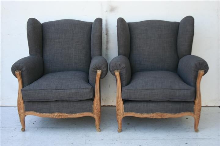 – Par de sillones estilo francés Luis XV tipo Bergere tapizados a nuevo en Lino Spazio