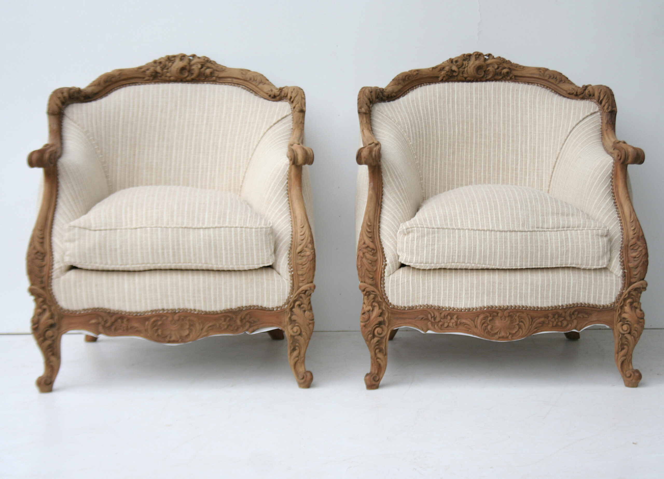 – Par de sillones estilo francés Luis XV tallados restaurados a nuevo