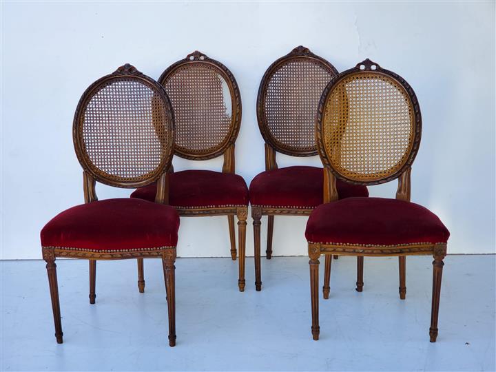 Juego de 4 sillas estilo francés Luis XVI de respaldo medallón con esterilla