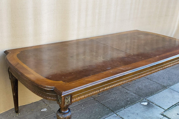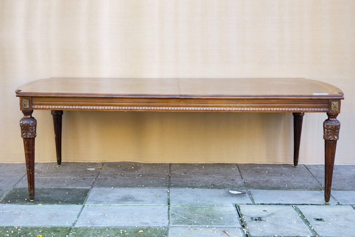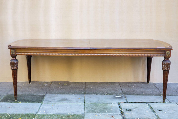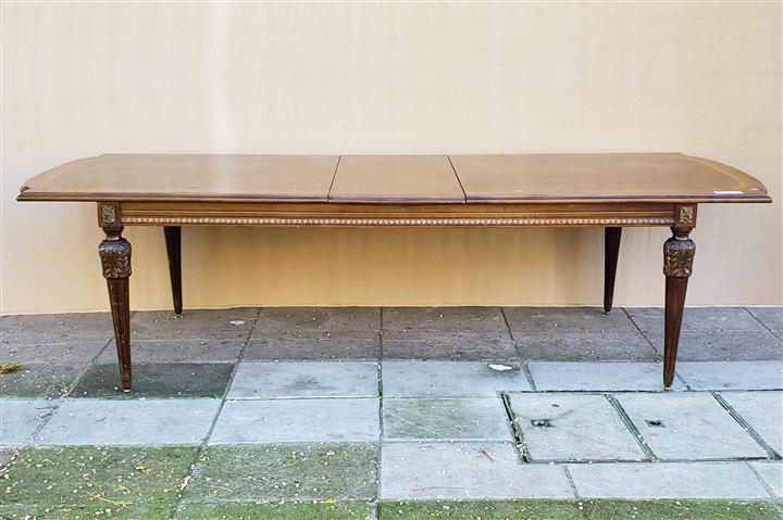 – Mesa de comedor estilo Francés Luis XVI con tablas de alargue – Es ideal para embellecer de forma única su comedor – La mesa fue lavada a nuevo MEDIDAS: ALTO 79cm / ANCHO abierta 110cm / cerrada / PROFUNDIDAD 293cm CÓDIGO: 8139-5271
