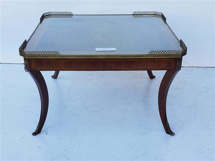 – MESA RATONA ESTILO FRANCES LUIS XVI CON BARANDA DE BRONCE – ES IDEAL PARA DECORAR DE FORMA ÚNICA SU SALA O LIVING – LA TAPA DE LA MESA TIENE VIDRIO MEDIDAS: 48cm alto / 80cm de ancho / 80cm profundidad CÓDIGO: 8138-5256
