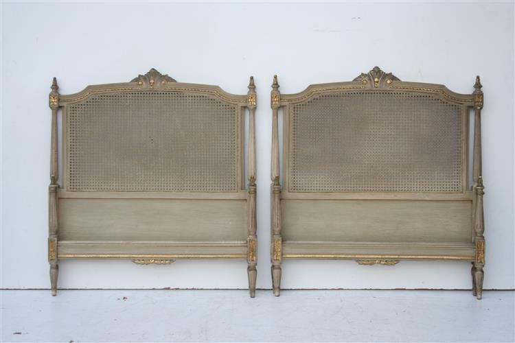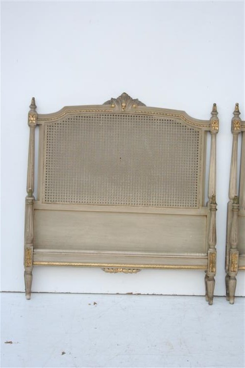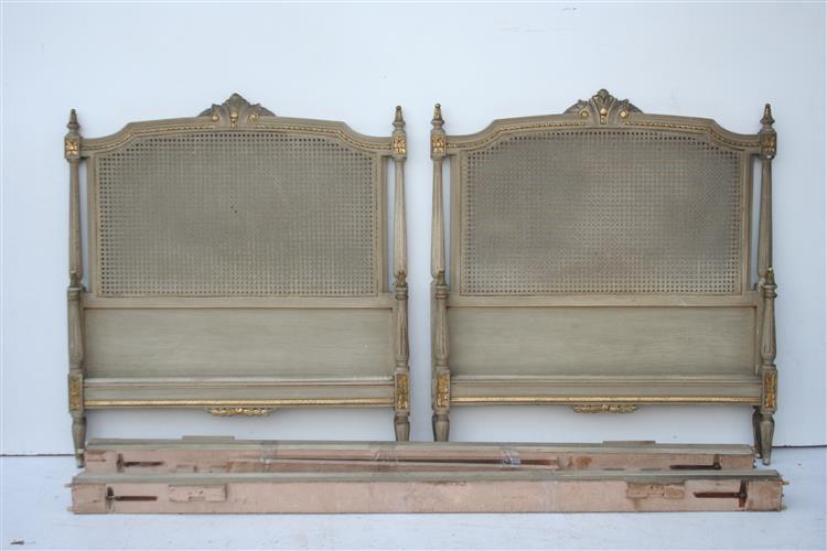 Par de camas estilo francés Luis XVI patinadas con esterilla