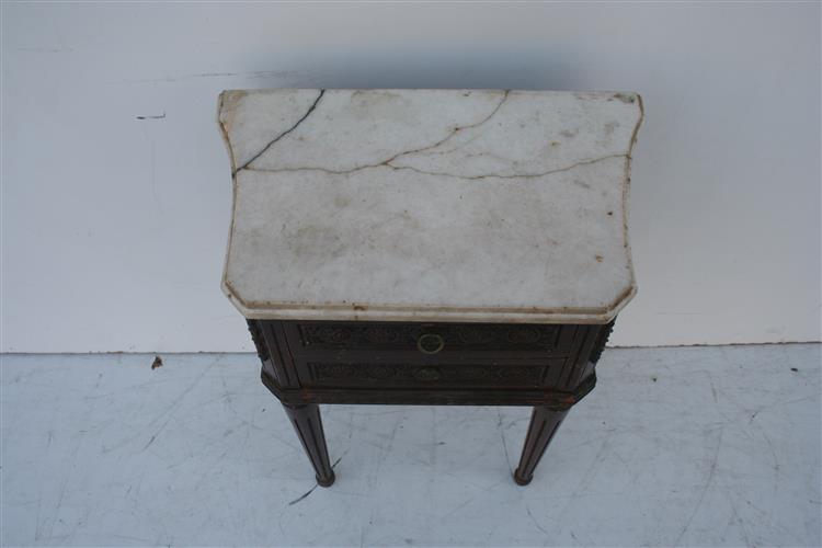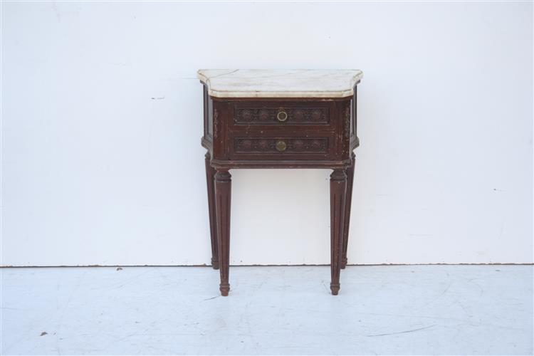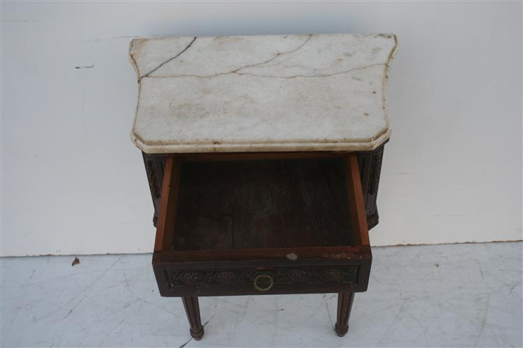 Mesa de luz estilo francés Luis XVI con mármol Es ideal para embellecer de forma única su dormitorio El mármol fue reparado MEDIDAS: ALTO 63cm / ANCHO 50cm / PROFUNDIDAD 30cm CÓDIGO: 7235-8471