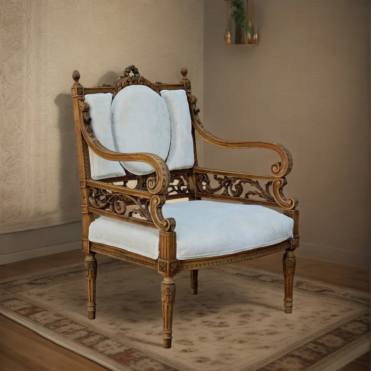 Par de sillones de estilo francés Luis XVI tallados tapizados en pana MEDIDAS: 91cm alto x 67cm ancho x 56 profundidad