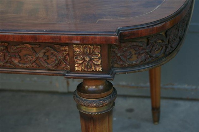 Espectacular mesa de comedor estilo Francés Luis XVI fija Se entrega con el lustrado a nuevo de la estructura de madera Es ideal para completar su juego de comedor con una pieza de calidad excepcional MEDIDAS ALTO 0.80m ANCHO 2.51m PROFUNDIDAD 1.11m CÓDIGO: 8029-7080