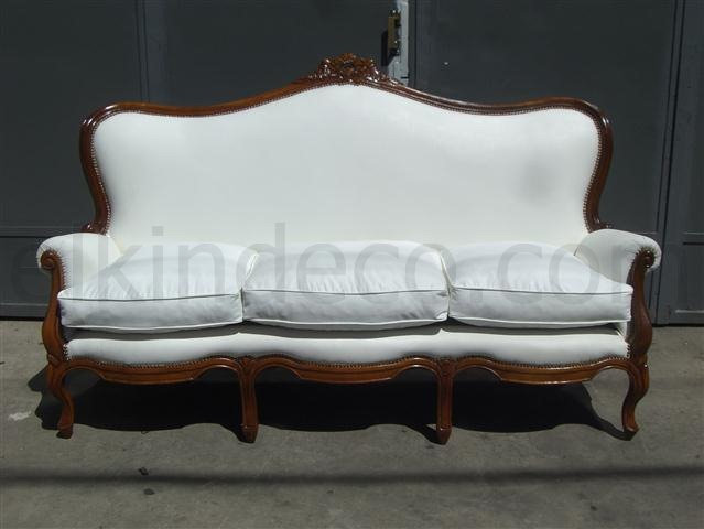 Espectacular sofá de 3 cuerpos estilo colonial tapizado a nuevo en eco cuero blanco de primera calidad.