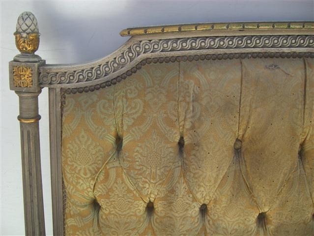 Espectacular antigua cama estilo francés Luis XVI patinada con respaldo tapizado en capitoné De calidad excepcional, es ideal para embellecer de forma única su dormitorio Se entrega completa, con los largueros y la parrilla de madera El tapizado es antiguo – TAMBIÉN PATINAMOS! Consulte por todo tipo de pátinas (blanco, negro, hueso, decapé, etc) |