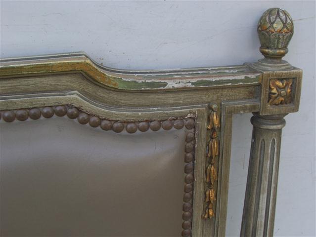 Espectacular antigua cama estilo francés Luis XVI patinada con respaldo tapizado De calidad excepcional, es ideal para embellecer de forma única su dormitorio Se entrega completa, con los largueros y la parrilla de madera El tapizado es antiguo – TAMBIÉN PATINAMOS! Consulte por todo tipo de pátinas (blanco, negro, hueso, decapé, etc) |